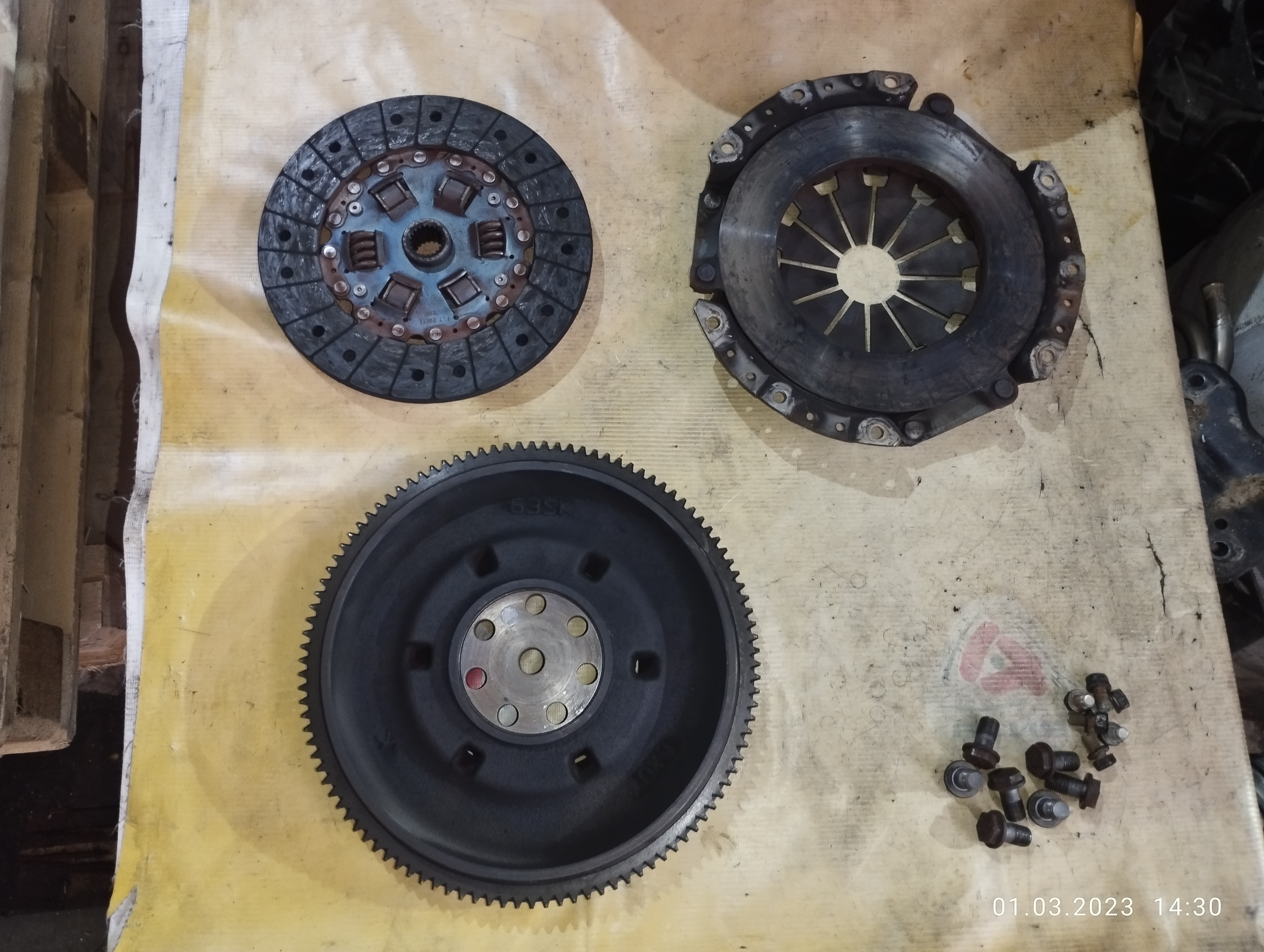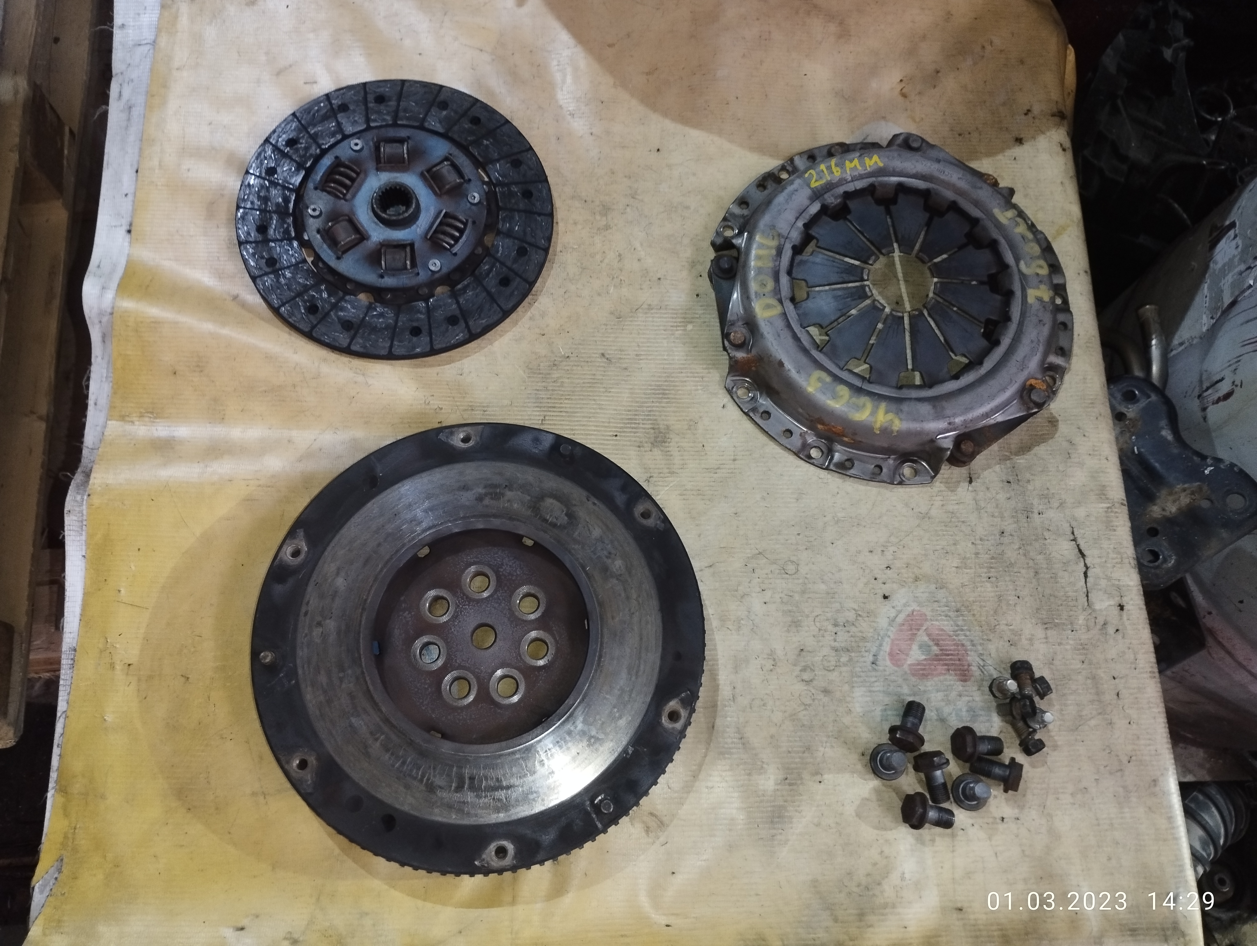 | Маховик Mitsubishi 4G63 RVR N23W m/t ПРЯМОЙ 7 болтов, + корзина DOHC диаметр диска 216 мм. ДЕФЕКТ ТРЕЩИНЫ ( 63SK ) MD188159 / MD188160 | ||