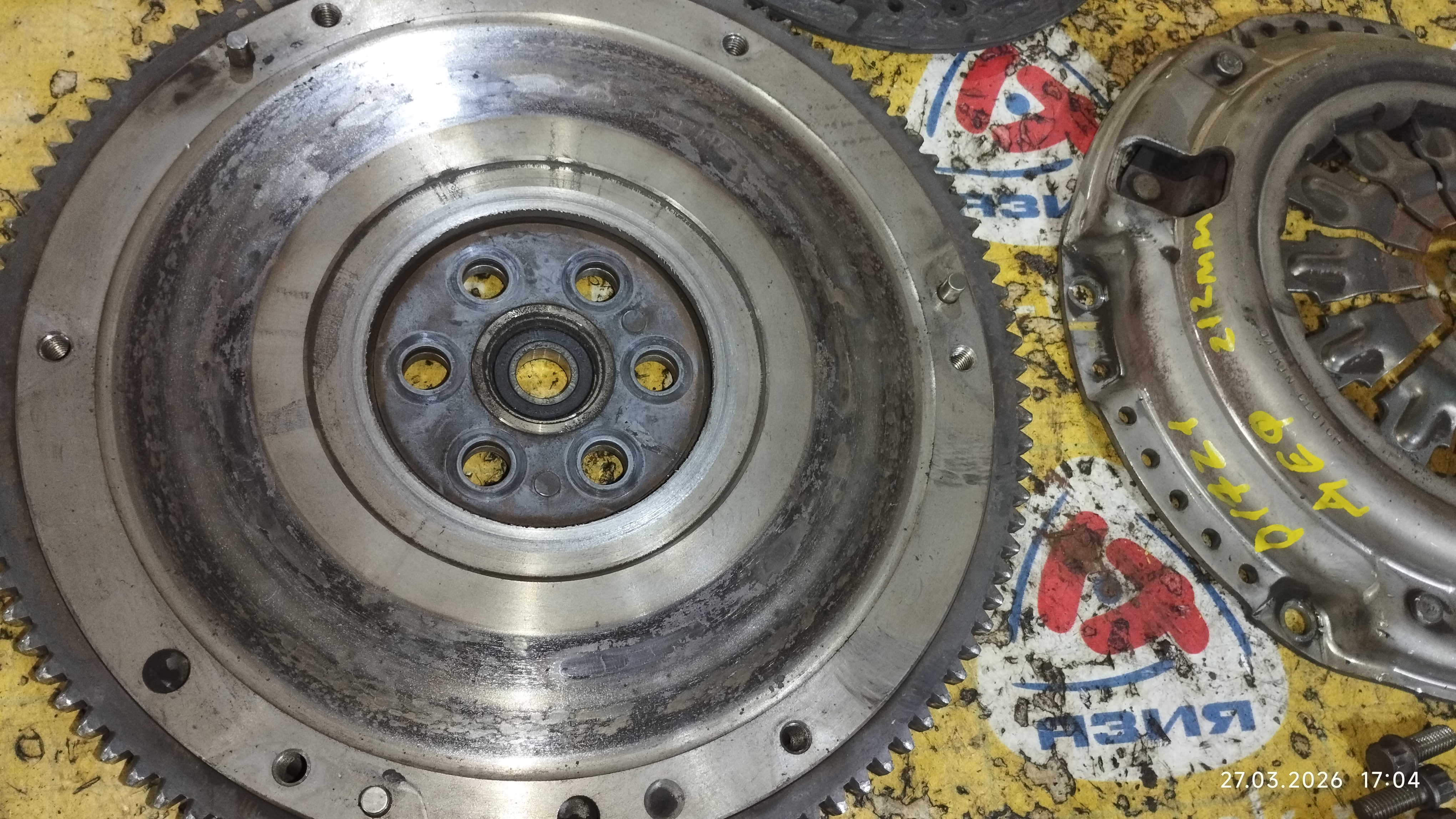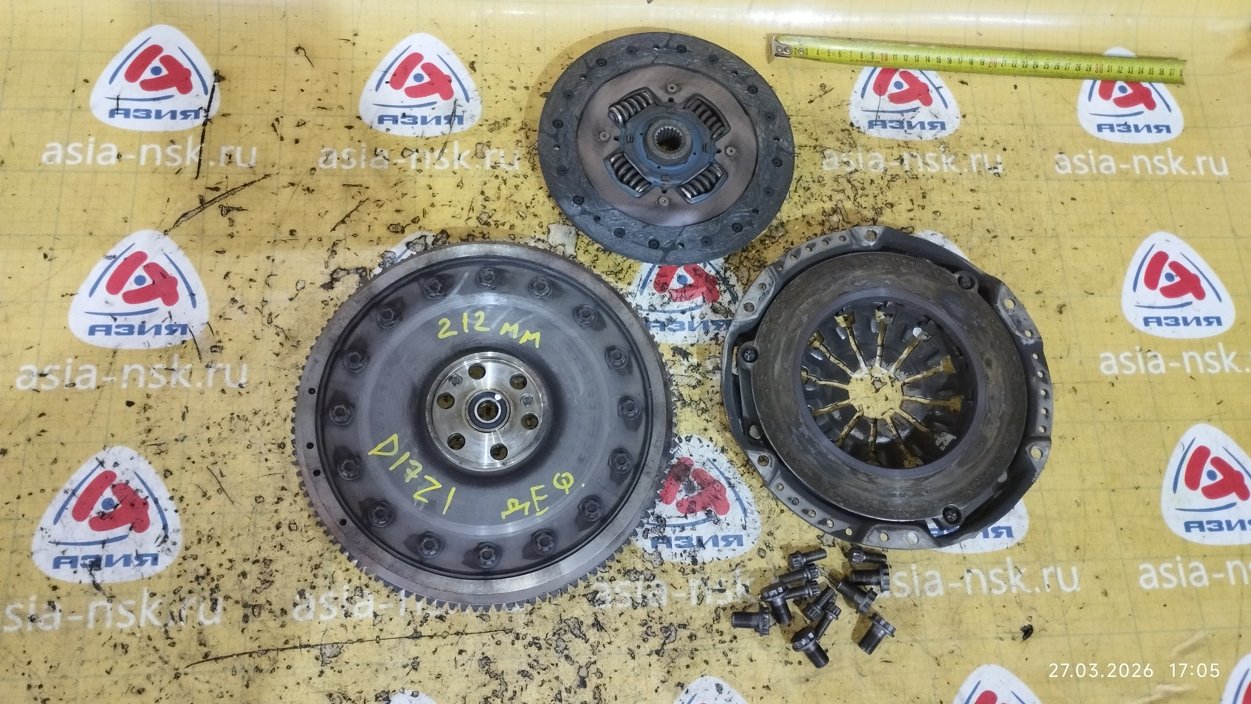 | Маховик Honda D17A1/D17Z1 Civic/Stream m/t ДЕФЕКТ + корзина (диаметр диска 210-212 мм.) | ||