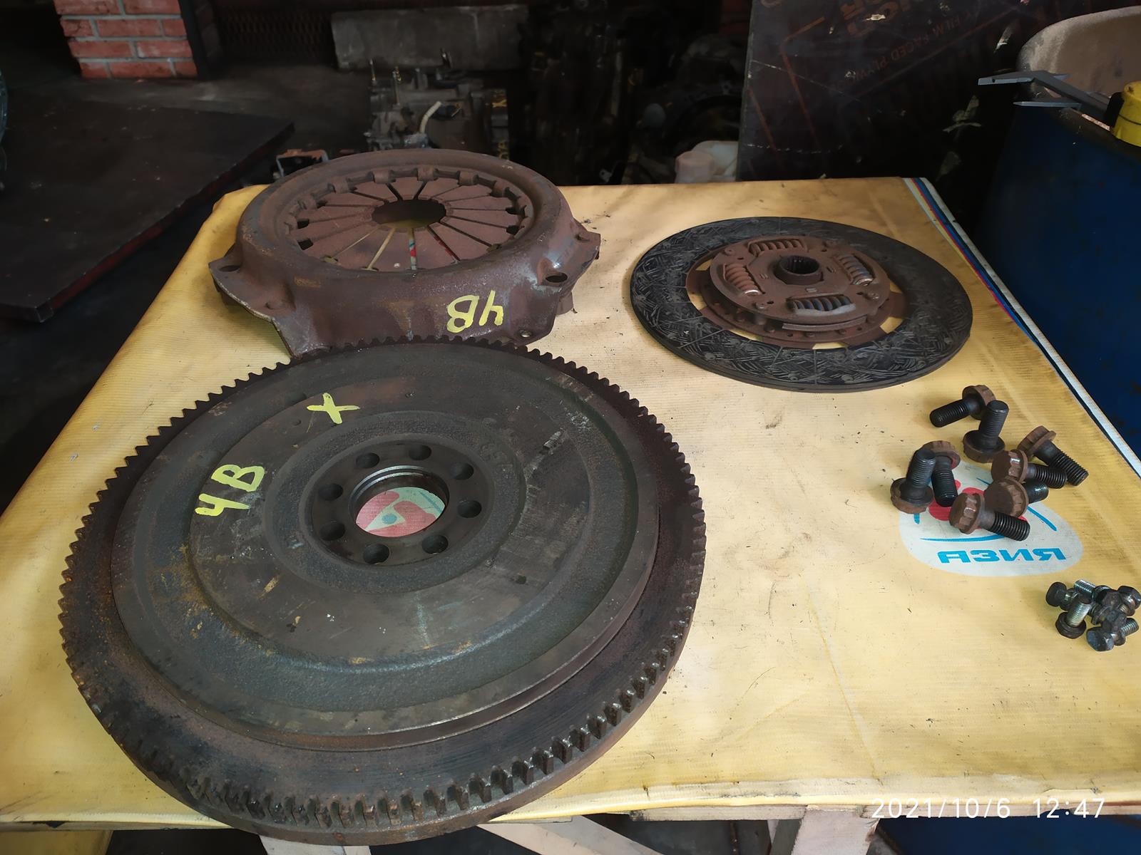 | Маховик Toyota 3B/4B Dyna BU100 m/t ДЕФЕКТ диаметр 330 мм. толщина 45 мм. 8 болтов диаметр диска 275 мм.+ корзина ( E ) 13405-56040 / 13405-56041 | ||