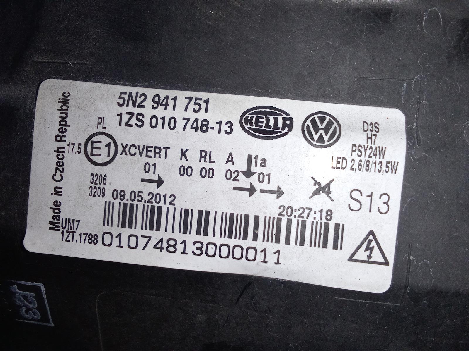 | Фара Volkswagen Tiguan 5N2 '2012 лев Япония в сборе (дефект крепления) 5N2941751 | ||