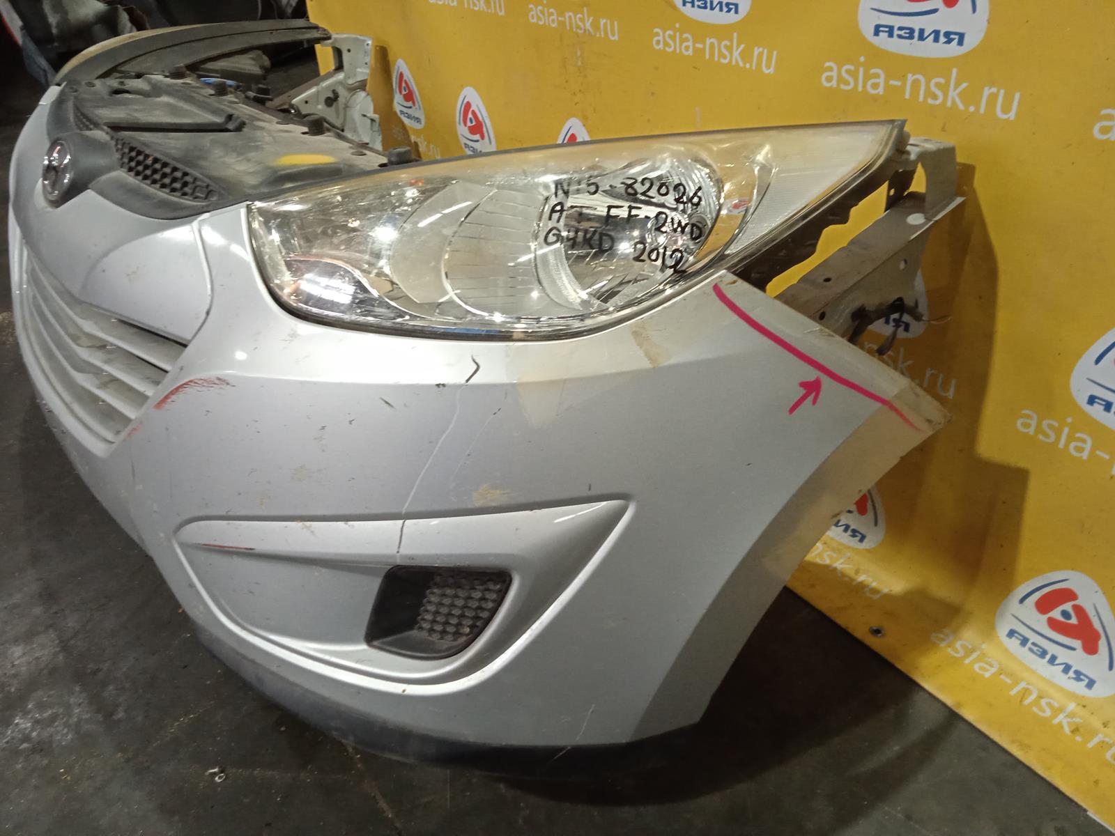 | Ноускат Hyundai Tucson LM/TM '2011 IX35 2.0L 2.4L бензин акпп, галоген (дефект рамки, бампера, правой фары) 2502 865112S000 (Серебро) | ||