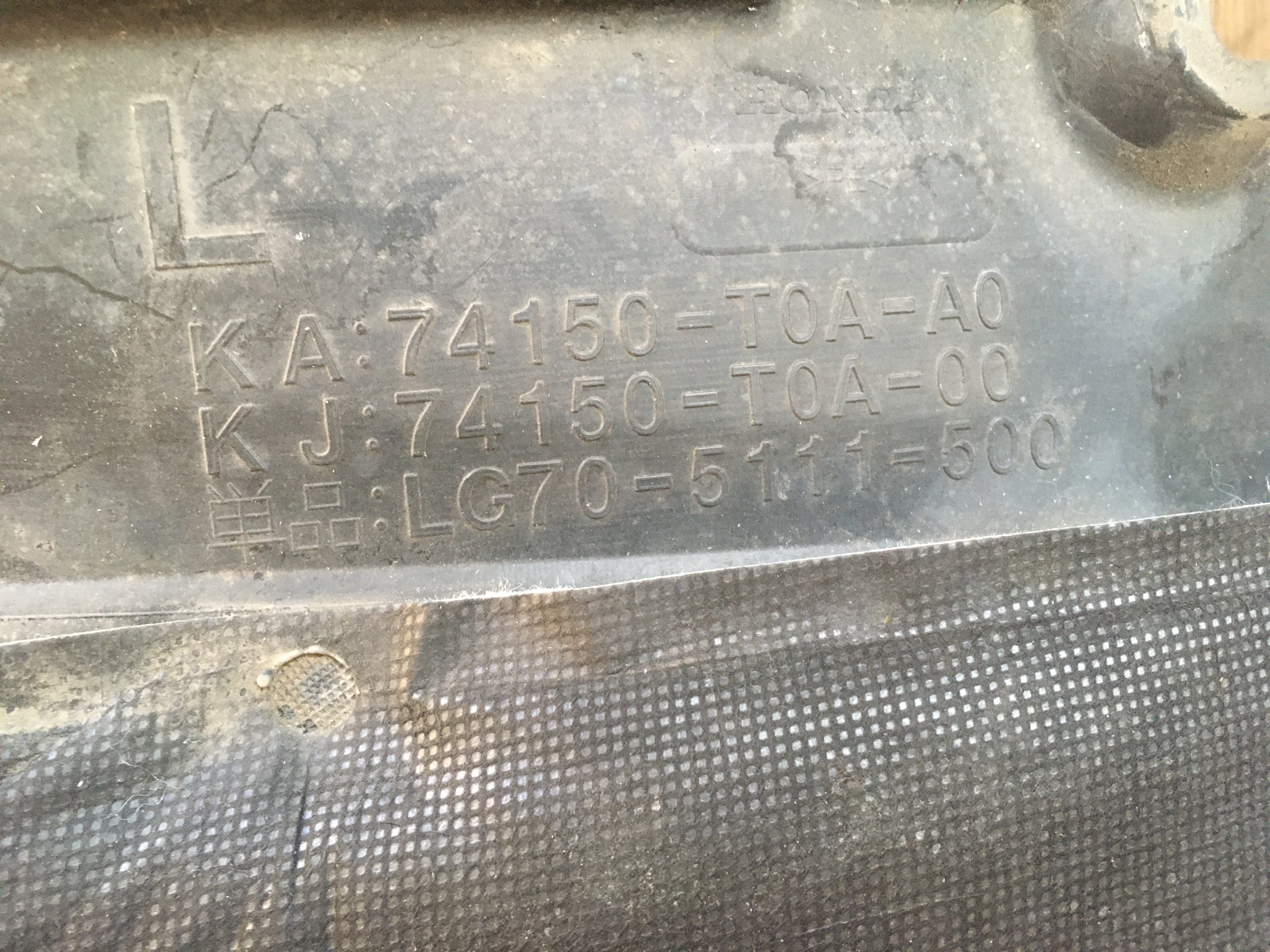 | Подкрылок Honda CR-V RM1/RM4 перед, лев 74150-T0A-A0 74150-T0A-00 | ||